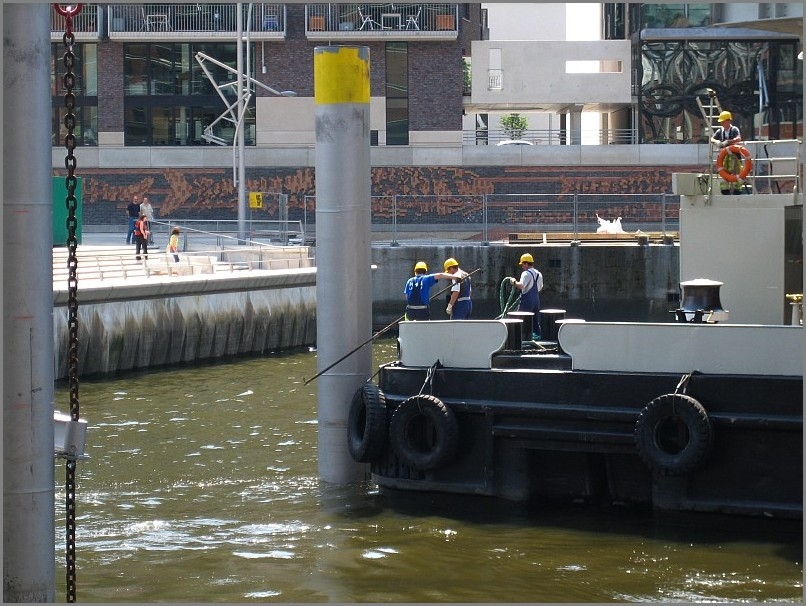 Mittlerweile macht auch der Dalmannkai dem Sandtorkai ganz schön Konkurrenz. Obwohl es noch wie eine Großbaustelle aussieht, tummeln sich schon sehr viel Hamburger und Gäste dort.