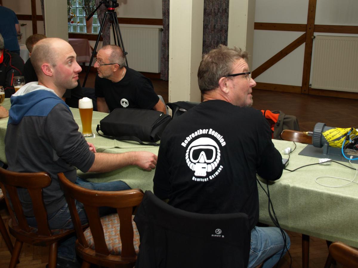 Dieses Jahr hatten sich 55 Teilnehmer zum Treffen angemeldet. Organisiert waren Vorträge bzw. Workshops über Tauchunfallmanagement, O2 Zellen Stresstests und eine Gerätevorstellung des rEvo CCR.