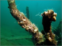 Zusehen gibt es einen Leichtflieger Richtung 80 Grad, weiter rechts ein Motorboot, noch weiter rechts in der Ecke eine Menge Loren und deren Reste. Dort war die Sicht mit 10m+ am besten. Auf dem Rückweg Steilwand linke Schulter kommt man zum Pumpenhaus. Dort erreicht man derzeit knapp 20m Wassertiefe. Zurück am Ausstieg bei 1-3m gigantische Flussbarsche von 50cm, ein Hecht von 1,20m und viel Jungfisch. Vom Einstieg nach links ist es an der senkrechten Steilwand auch sehr interessant. Am Grund liegt eine Menge interessanter Unrat und auch Loren. Muschelbewuchs findet man an vereinzelten u/w Bäumen und auch am Fels.