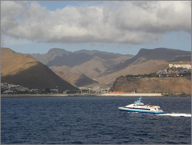 An einem der letzten Tage machte ich noch einmal mit dem Tele Jagd auf den Benchijigua Express. Die Bojenkette mit den Einfahrtsmarkierungen für die „Kleinen“ im Hafenbecken ist neu. Wahrscheinlich ist beinahe mal nen Segler umgebügelt worden. Die Fähren haben auch gut Fahrt drauf.