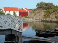 Das FerieSenter in Skottevik liegt idyllisch direkt am Wasser in vielen kleinen Buchten. Holzbrücken verbinden die felsigen kleine Inseln miteinander oder man kommt nur mit dem Boot zu seinem Haus.