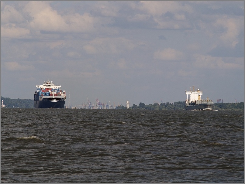 Etwas außerhalb von Hamburg elbabwärts Richtung Nordsee kann man auch gut Schiffe gucken.